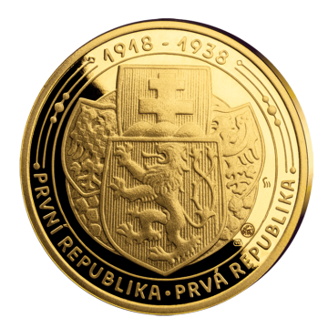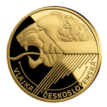 Averz zlatej razby Vlajka československá je vlastne nádhernou umeleckou synergiou národných symbolov. Do troch polí štátnej vlajky, ktorá geometricky delí mincovú plochu, je nápadito zakomponovaná hlava českého leva a lístoček lipy, nášho národného stromu.